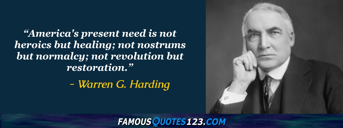 America's present need is not heroics but healing; not nostrums but normalcy; not revolution but restoration.