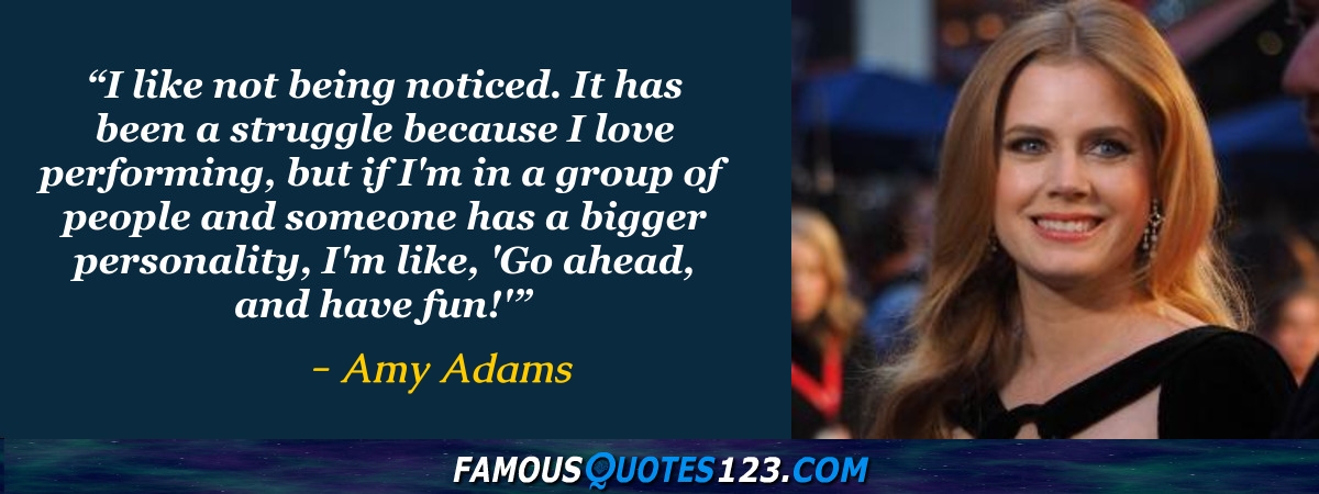 I like not being noticed. It has been a struggle because I love performing, but if I'm in a group of people and someone has a bigger personality, I'm like, 'Go ahead, and have fun!'