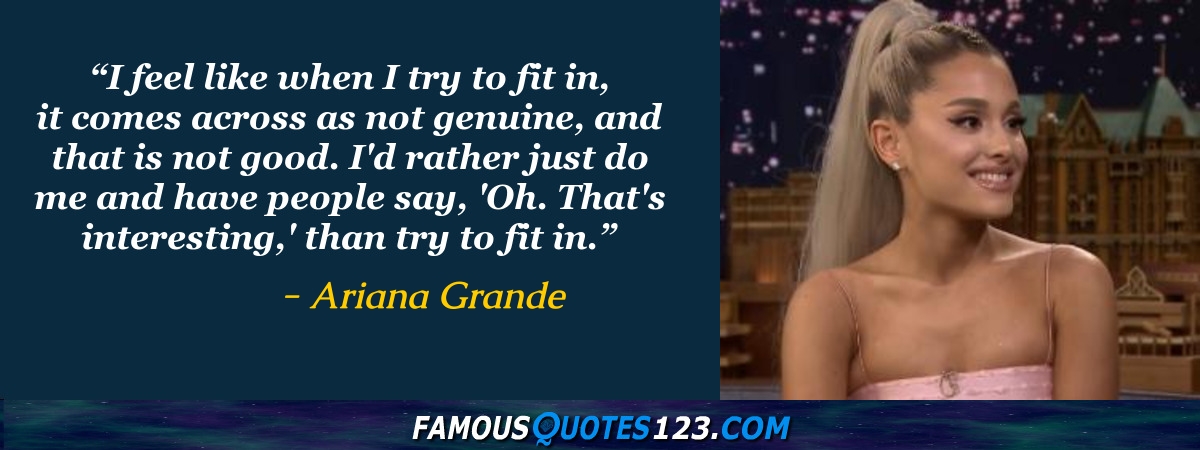 I feel like when I try to fit in, it comes across as not genuine, and that is not good. I'd rather just do me and have people say, 'Oh. That's interesting,' than try to fit in.