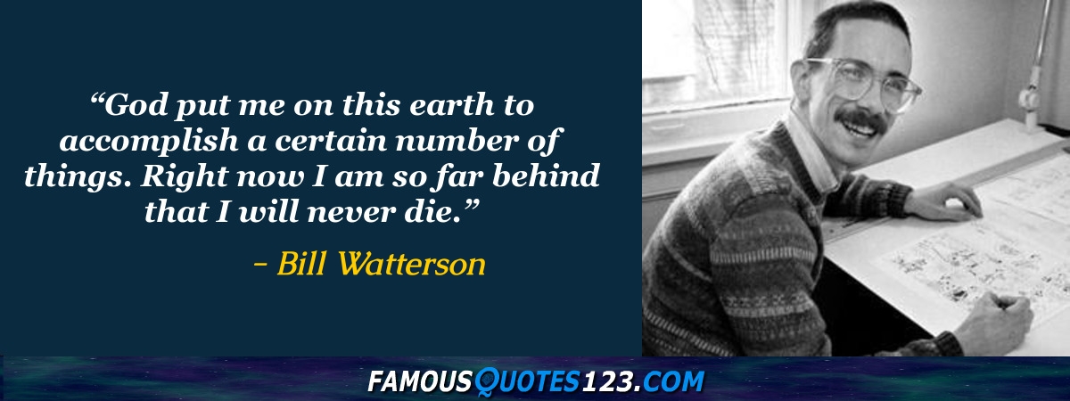 God put me on this earth to accomplish a certain number of things. Right now I am so far behind that I will never die.