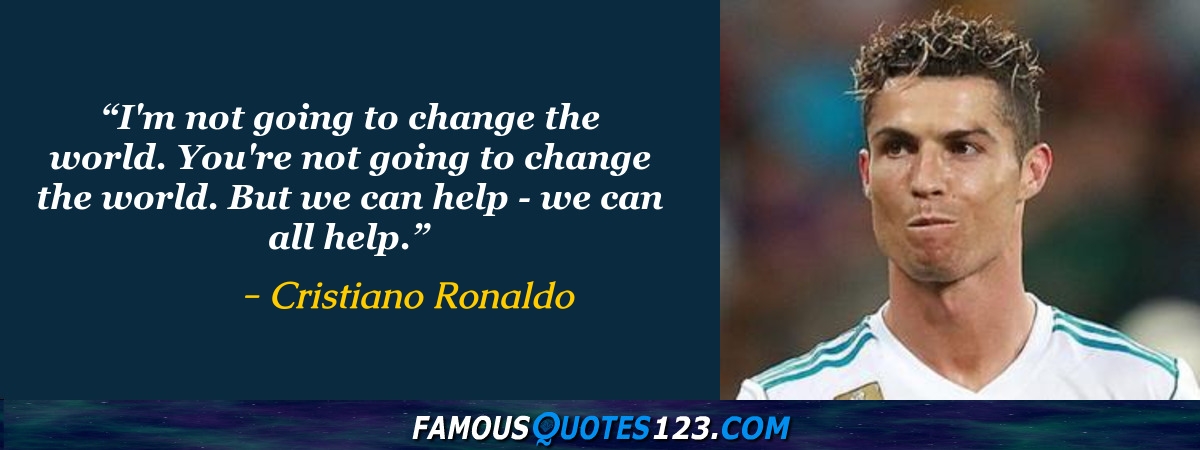 I'm not going to change the world. You're not going to change the world. But we can help - we can all help.