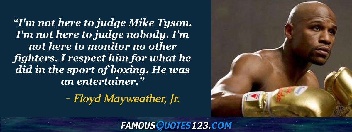 I'm not here to judge Mike Tyson. I'm not here to judge nobody. I'm not here to monitor no other fighters. I respect him for what he did in the sport of boxing. He was an entertainer.