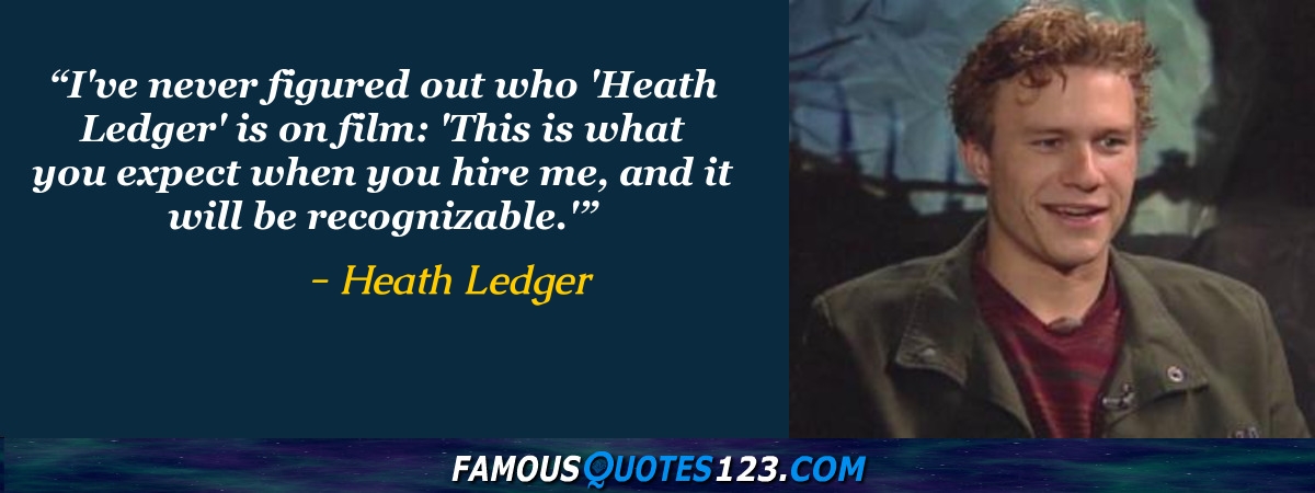 I've never figured out who 'Heath Ledger' is on film: 'This is what you expect when you hire me, and it will be recognizable.'