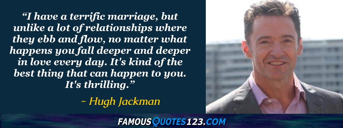 I have a terrific marriage, but unlike a lot of relationships where they ebb and flow, no matter what happens you fall deeper and deeper in love every day. It's kind of the best thing that can happen to you. It's thrilling.
