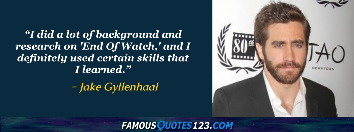 I did a lot of background and research on 'End Of Watch,' and I definitely used certain skills that I learned.