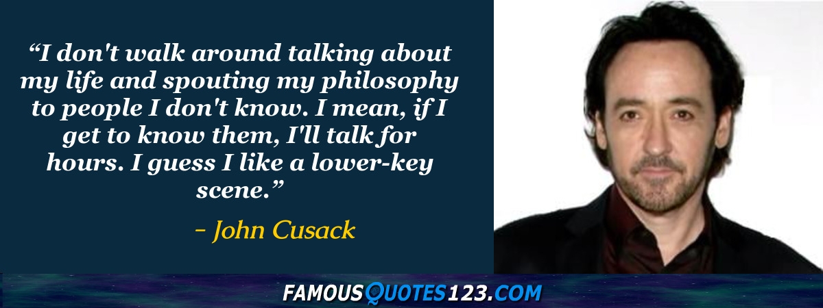 I don't walk around talking about my life and spouting my philosophy to people I don't know. I mean, if I get to know them, I'll talk for hours. I guess I like a lower-key scene.