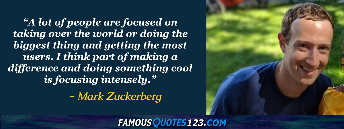 A lot of people are focused on taking over the world or doing the biggest thing and getting the most users. I think part of making a difference and doing something cool is focusing intensely.