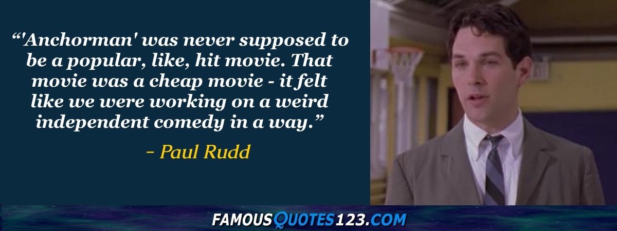 'Anchorman' was never supposed to be a popular, like, hit movie. That movie was a cheap movie - it felt like we were working on a weird independent comedy in a way.