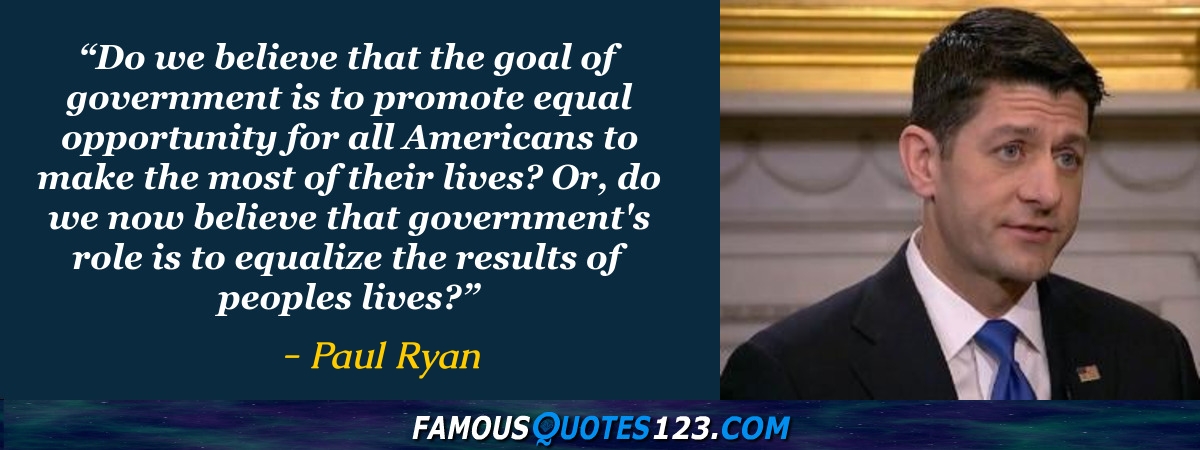 Do we believe that the goal of government is to promote equal opportunity for all Americans to make the most of their lives? Or, do we now believe that government's role is to equalize the results of peoples lives?