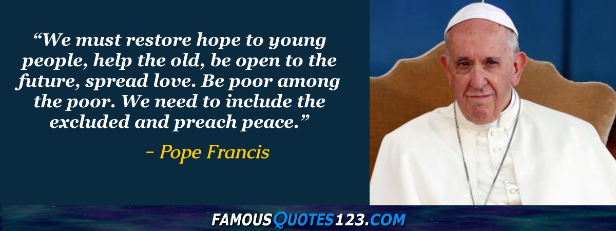 We must restore hope to young people, help the old, be open to the future, spread love. Be poor among the poor. We need to include the excluded and preach peace.
