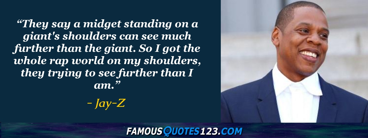 They say a midget standing on a giant's shoulders can see much further than the giant. So I got the whole rap world on my shoulders, they trying to see further than I am.