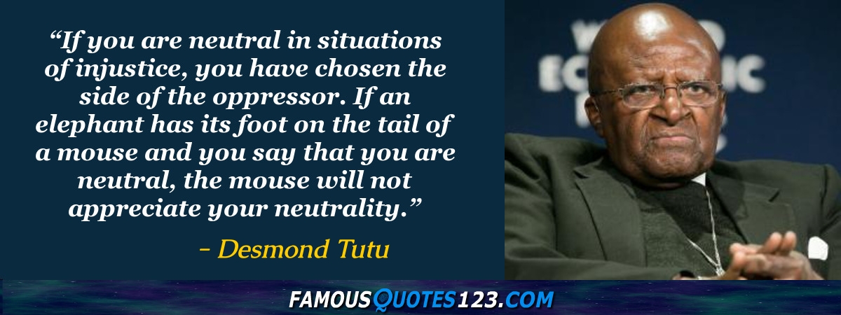 If you are neutral in situations of injustice, you have chosen the side of the oppressor. If an elephant has its foot on the tail of a mouse and you say that you are neutral, the mouse will not appreciate your neutrality.