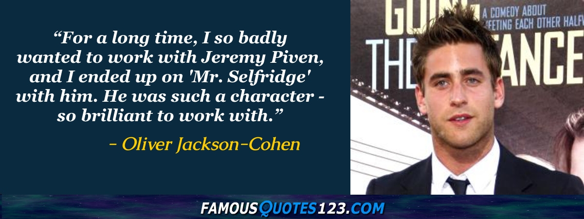 For a long time, I so badly wanted to work with Jeremy Piven, and I ended up on 'Mr. Selfridge' with him. He was such a character - so brilliant to work with.