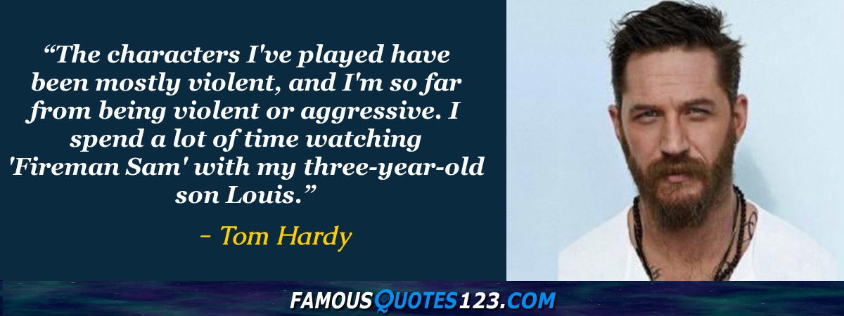 The characters I've played have been mostly violent, and I'm so far from being violent or aggressive. I spend a lot of time watching 'Fireman Sam' with my three-year-old son Louis.