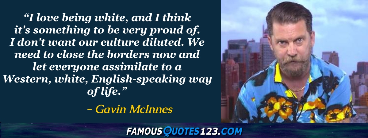 I love being white, and I think it's something to be very proud of. I don't want our culture diluted. We need to close the borders now and let everyone assimilate to a Western, white, English-speaking way of life.