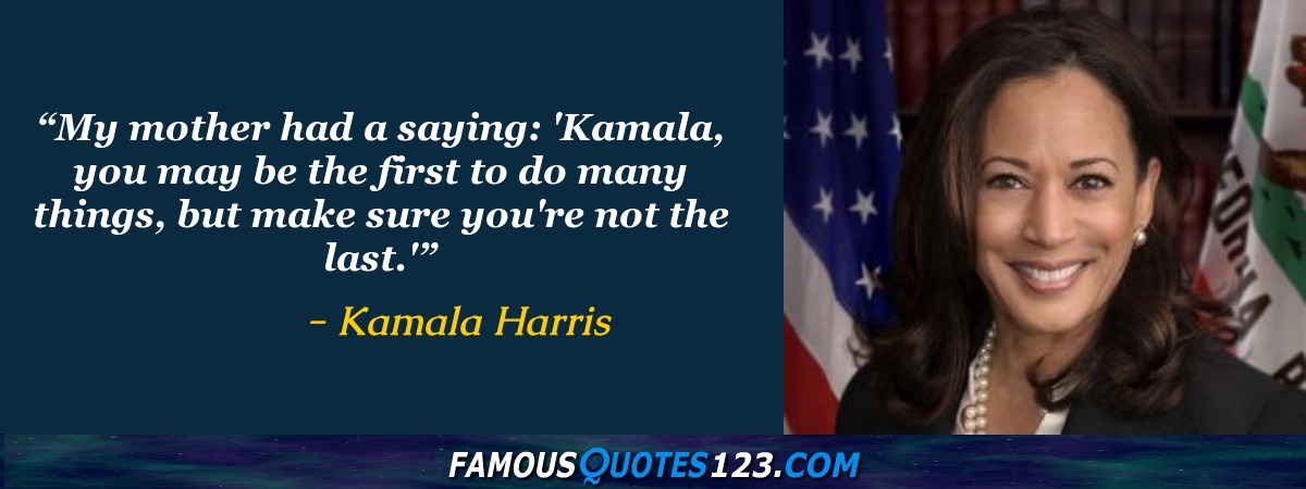 My mother had a saying: 'Kamala, you may be the first to do many things, but make sure you're not the last.'