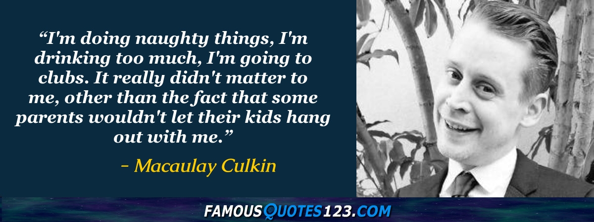 I'm doing naughty things, I'm drinking too much, I'm going to clubs. It really didn't matter to me, other than the fact that some parents wouldn't let their kids hang out with me.