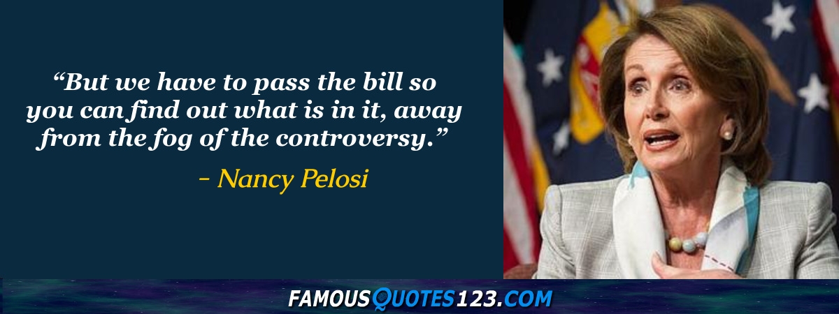 But we have to pass the bill so you can find out what is in it, away from the fog of the controversy.