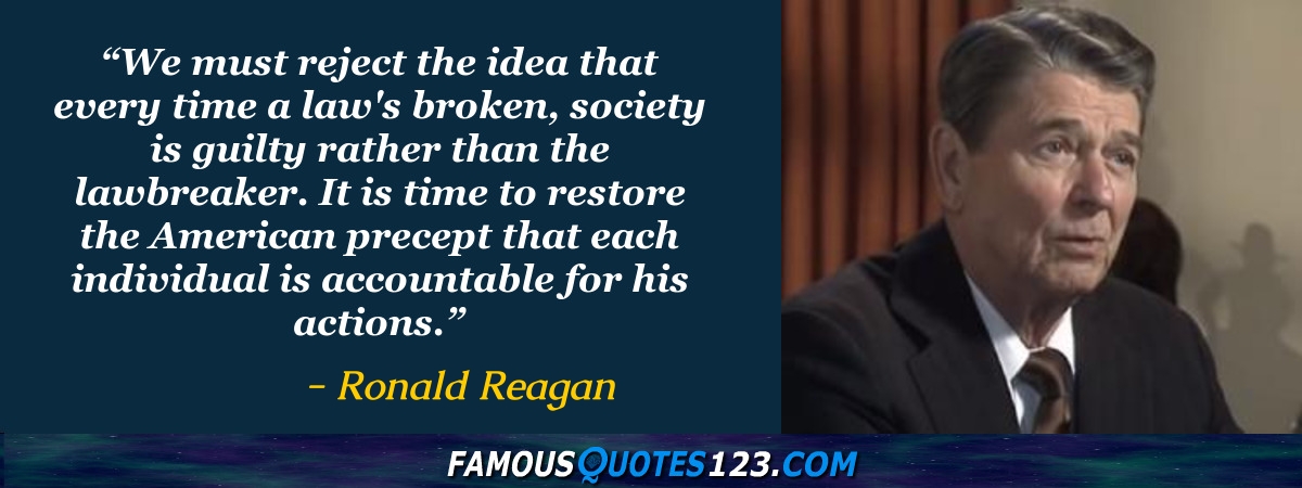 We must reject the idea that every time a law's broken, society is guilty rather than the lawbreaker. It is time to restore the American precept that each individual is accountable for his actions.