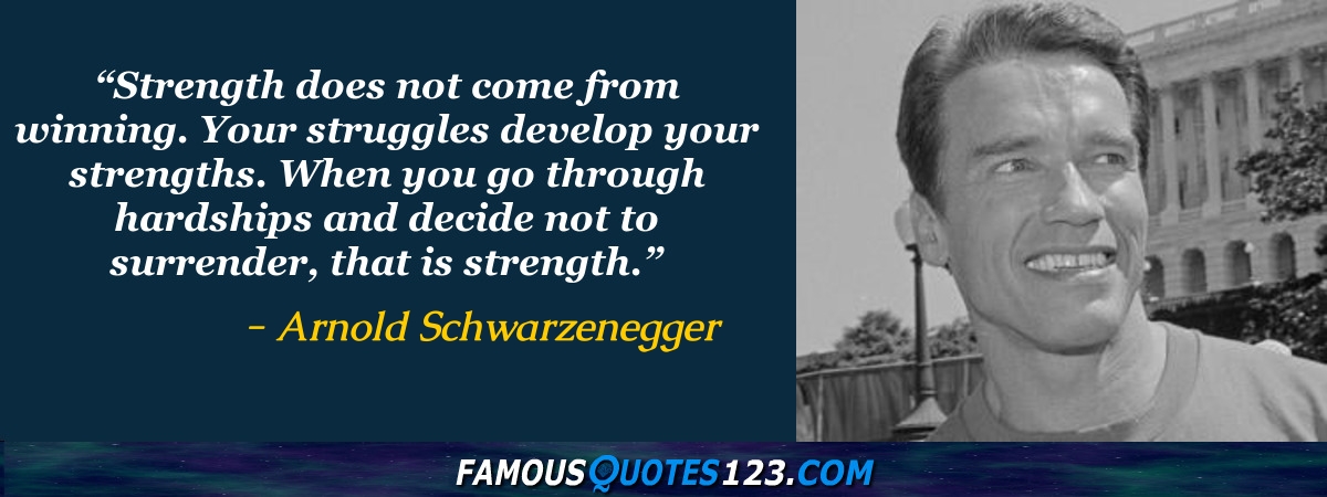Strength does not come from winning. Your struggles develop your strengths. When you go through hardships and decide not to surrender, that is strength.