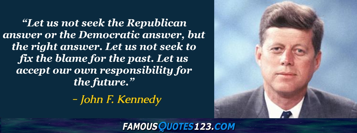 Let us not seek the Republican answer or the Democratic answer, but the right answer. Let us not seek to fix the blame for the past. Let us accept our own responsibility for the future.