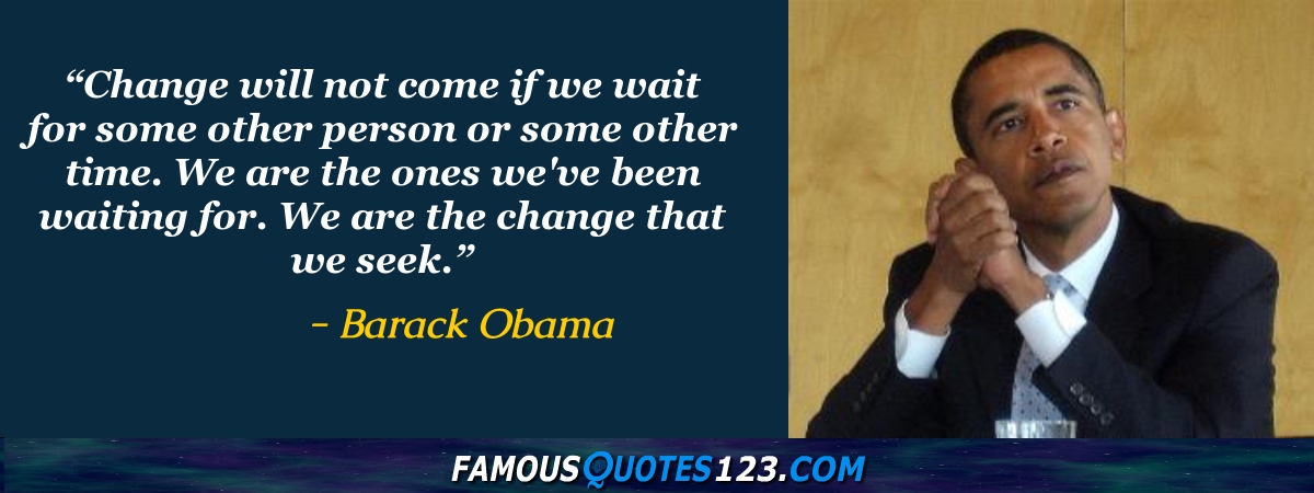 Change will not come if we wait for some other person or some other time. We are the ones we've been waiting for. We are the change that we seek.