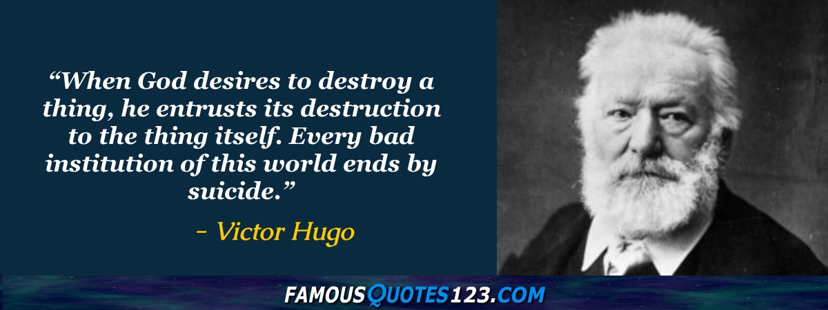 When God desires to destroy a thing, he entrusts its destruction to the thing itself. Every bad institution of this world ends by suicide.
